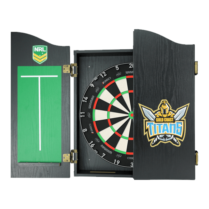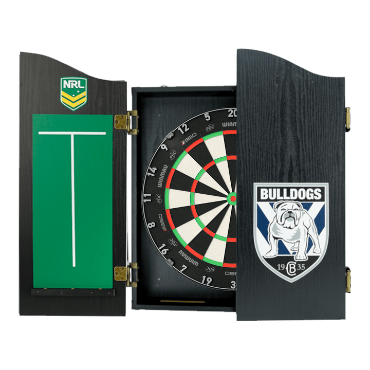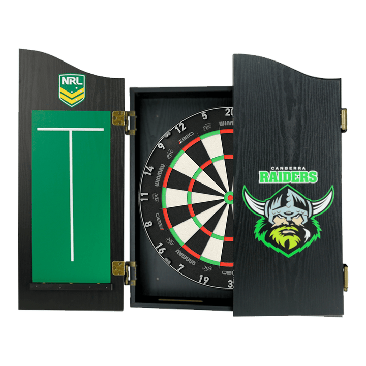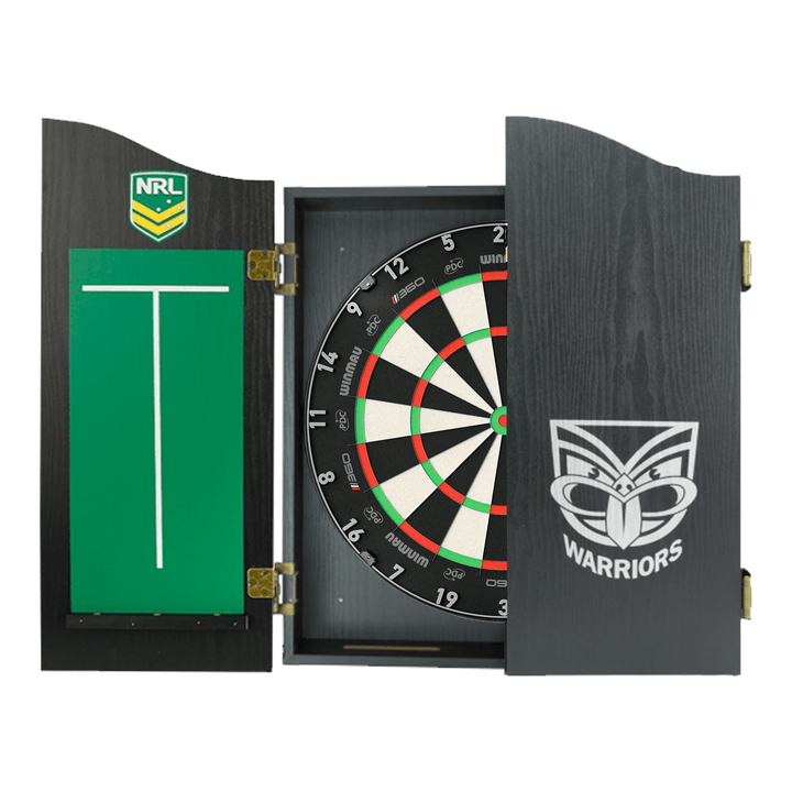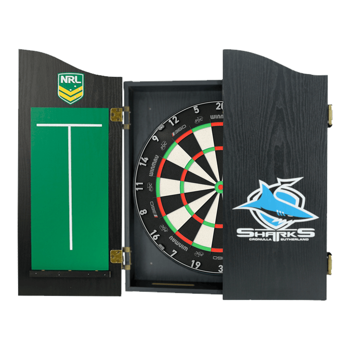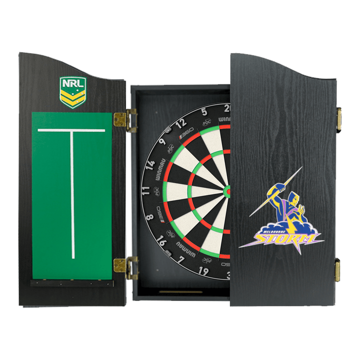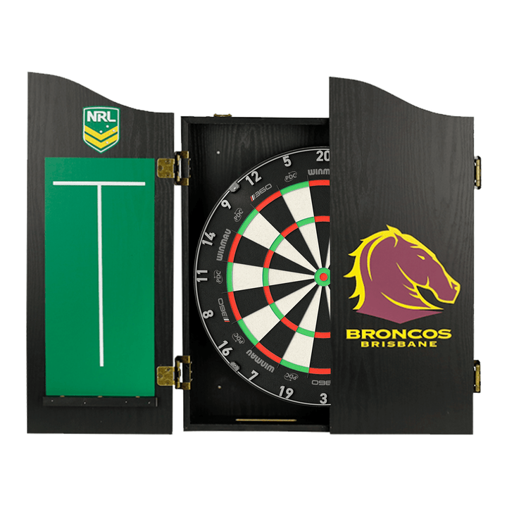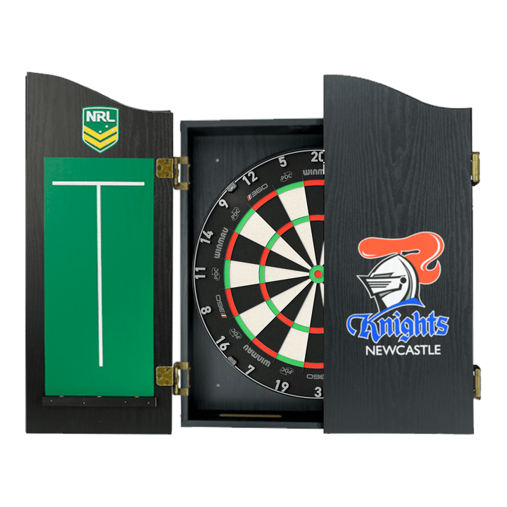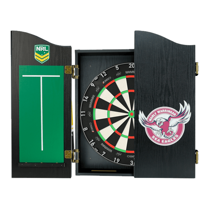 The perfect start to your new obsession, this complete set comes with a Winmau Blade 6, Blade 6 Dual Core or Clade 6 Triple Core tournament approved specification dartboard. You also get 1 set of Official NRL darts and an Official branded high quality veneer-effect cabinet in the team of your choice.
