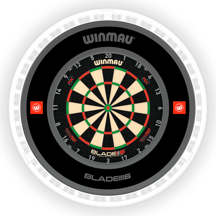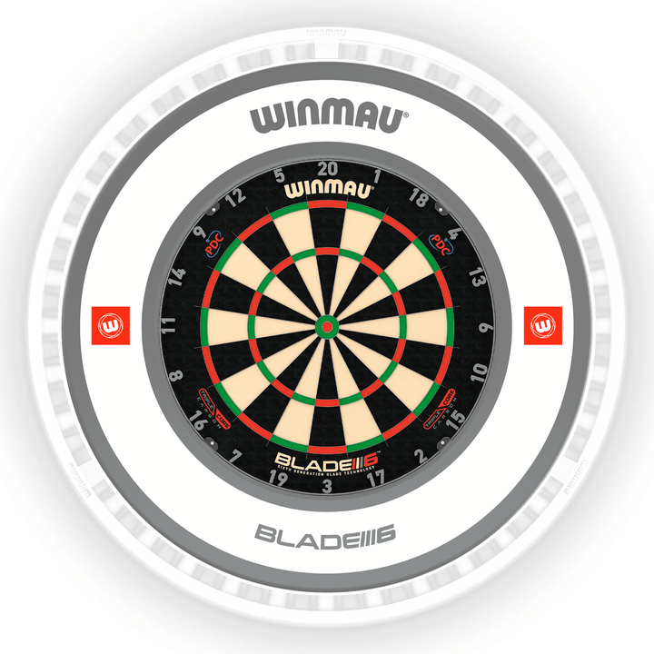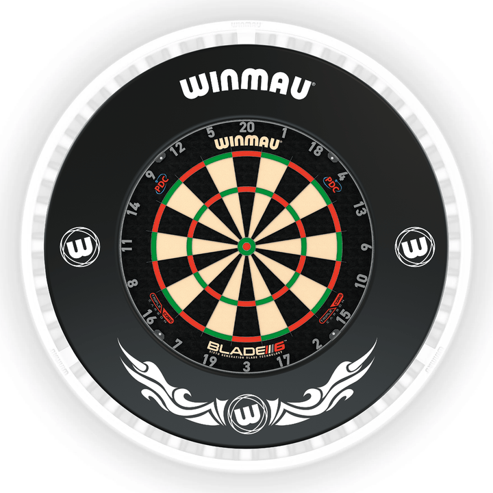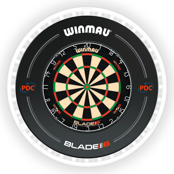 Blade 6 Dartboard, Surround & Ice White Plasma Light Bundle